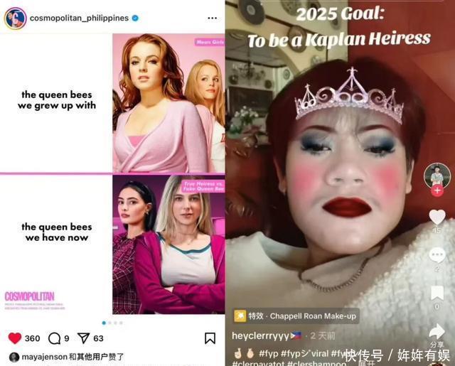 《TrueHeiressvs.FakeQueenBee》讲述的是一个富家女为了交到真朋友,于是扮演普通人去新学校报道,却遇到了假名媛同学以她的身份在外招摇撞骗。女主在隐藏身份的情况下,从一开始被假名媛同学霸凌,到最后逆袭成功。 第一集,当博主还在推测女主的富豪爸爸属于哪种阶级、为什么会如此在意女儿不能骑车上学时,剧情已经飞速进入了女主被同学嘲笑穷酸的霸凌戏。当博主困惑于女主的同学为什么会这么说话、女主进入的是私立还是公立学校时,女主的同学突然掏出了刀。 来不及做出任何反应的博主发现,第一集就这样结束了。他迫不及待想知道,女主是被杀了吗?接下来84集演什么?难道是一个漫长的葬礼? 博主不停吐槽台词是AI写的、演员念台词拗口,但又不断被急速推进的剧情吸引着点开下一集。而起初吐槽情节极不合理的博主,在全部看完之后,竟然认为这是一个很好的正能量故事,告诉我们不能以貌取人。 看来小毛小病并不阻碍故事理解。这部短剧之所以能在美国小爆,是因为其与经典电影《贱女孩》类似,都呈现了复杂的女性校园社交,尤其是一个“Queenbee(直译女王蜂,引申意为社交女王)”对所有女孩的致命吸引力。